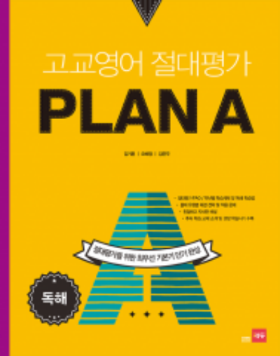 고교영어 절대평가 PLAN A는 절대평가 시대에 가장 기본적이고 최우선시되는 영어의 기본 핵심을 분야별(구문·어법, 독해, 어휘) 3권 시리즈로 담고 있다. 독해편은 지난 20년간 실시된 기출 수능을 분석해 절대 독해 유형 12개를 선정하고 특징과 전략을 소개한다. 실전감각을 키울 수 있는 미니 모의고사 또한 마련되어 있다. 또, 앞으로의 영어 공부를 위한 “절대평가 로드맵”을 통해 효율적인 학습계획까지 세울 수 있도록 완벽하게 구성했다.