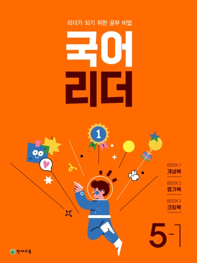 국어리더는 총 세권으로 나누어져 있습니다. BOOK 1(개념북)은 교과서 개념을 쉽게 이해할 수 있는 개념북입니다. BOOK 2(평가북)은 다양한 유형의 문제를 모은 평가북입니다. BOOK 3(코칭북)은 쉽고 자세한 정답과 풀이로 되어 있습니다.