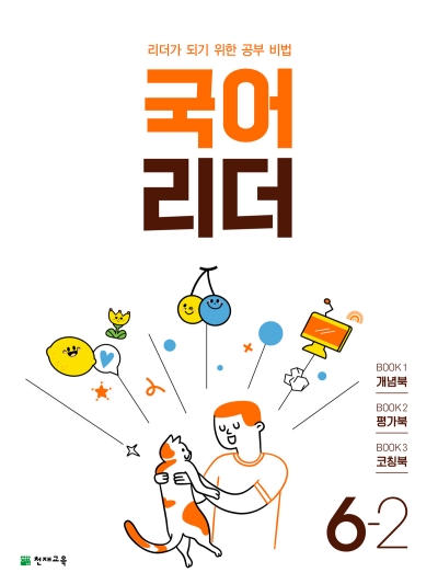 국어리더는 총 세권으로 나누어져 있습니다. BOOK 1(개념북)은 교과서 개념을 쉽게 이해할 수 있는 개념북입니다. BOOK 2(평가북)은 다양한 유형의 문제를 모은 평가북입니다. BOOK 3(코칭북)은 쉽고 자세한 정답과 풀이로 되어 있습니다.
