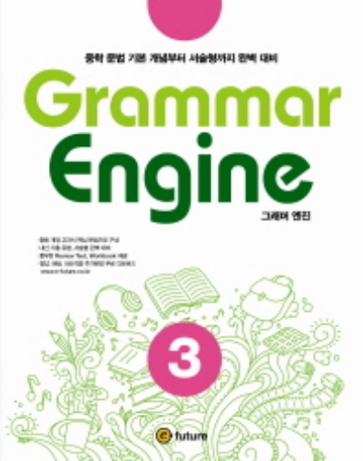 중학 문법 기본 개념부터 서술형까지 대비할 수 있는 Grammar Engine 입니다. 중등 개정 교과서 핵심 문법으로 구성되어 있다. 내신 기출 유형을 집중 분석하고 적용하였으며 수록된 서술형 문제 풀이로 내신 대비가 가능하다. 또한 체계적인 복습 활동을 반복적으로 유도하여 실력을 향상시킨다.