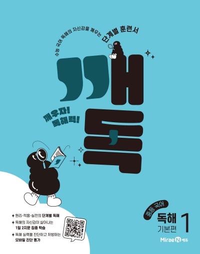 중등 깨독 시리즈는 수능 국어 독해의 자신감을 깨우는 단계별 훈련서로, 독해서와 어휘서로 구성되어 있습니다. 독해서는 총 4권(준비편, 기본편, 실력편, 수능편), 어휘서는 총 2권(종합편, 수능편)이 있습니다. 중학교 교과서 및 기출 지문을 바탕으로 지문 독해와 어휘 학습을 하며 독해력과 어휘력, 문해력을 기를 수 있습니다. 독해서는 1일 2지문 30분, 어휘서는 1일 6쪽 20분 집중 학습으로 자기 주도 학습 습관을 기를 수 있습니다. 모바일 진단 평가를 통해 독해 실력과 어휘 실력을 진단하고, 수능 국어 1등급 대비를 위한 맞춤형 처방을 받을 수 있습니다.