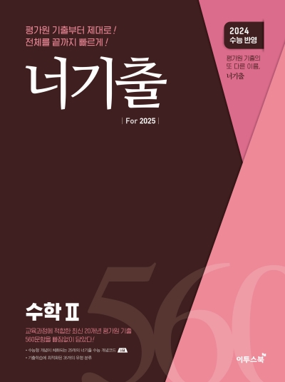 2015 개정 교육과정에 적합한 수학 평가원 기출을 빠짐없이 담았다. 수능형 핵심개념을 정리한 너기출 개념코드(너코)로 개념, 문제, 해설의 유기적 학습이 가능하며 각 유형별 난이도순/출제년도 순 매끄러운 배열로 기출의 진화 한눈에 파악이 가능하다. 평가원 기출부터 제대로, 전체를 끝까지 빠르게 공부하고 싶다면, 너기출 For 2025!