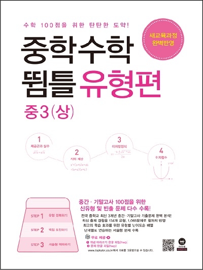 정리가 잘되어 있는 교재로 공부하기 좋습니다. 내신 준비를 위한 신유형과 빈출문제를 많이 수록하고 있어서 문제를 다양하게 풀어보고 문제를 완벽하게 마스터합니다. 스스로 공부하고 뜀틀을 점프할 수 있도록합니다.