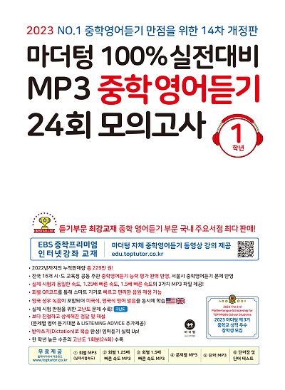 영어 듣기평가 교재 중에서 가장 유명한 교재라고 할수 있습니다. 중학 영어듣기 부문 국내 주요서점 최다 판매이고 최신 개정판으로 2021년까찌 총 판매량 214만원입니다. 영어 듣기 공부를 위해서 가장 탁월한 선택이 됩니다.