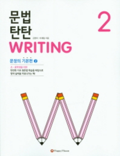 문법 탄탄 WRITING 시리즈는 기초 영문법 학습을 바탕으로 단계적인 영어문장 쓰기를 할 수 있도록 구성된 영작문 교재입니다. 필수 영문법 학습을 바탕으로 실제로 많이 쓰는 문장을 충분히 써 볼 수 있도록 하였으며, 기본 문장에서 확장된 문장 쓰기를 할 수 있도록 난이도를 체계적으로 조정하였습니다. 또한 학교 내신 및 서술형 시험 대비를 위한 평가 유형의 문제들을 수록하여 내신 대비에 도움이 될 수 있도록 하였습니다. 명쾌한 영문법 설명을 통하여 영문법의 기초를 탄탄히 하고, 학습한 문법을 바탕으로 영작을 함으로 영문법과 영작실력을 동시에 향상시킬 수 있을 것이며, 어렵게만 느껴지던 영작에 대한 자신감을 가질 수 있을 것입니다.