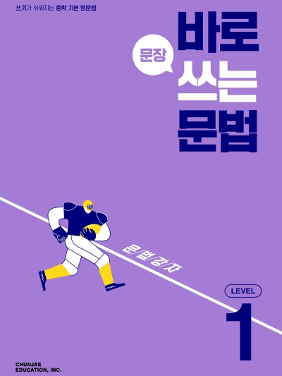 바로 문장 쓰는 문법은 중학 교과서 13종을 모두 분석하여 꼭 알아야 하는 문법을 정리했습니다. 문법 개념을 자세하게 나눠 소개하고, 개념 설명도 이해하기 쉽게 정리했어요. 개념 확인 노트와 기본 확인 노트에서 개념 정리를 반복할 수 있게 하여 학습 효과 또한 높였습니다. 특히, 학습한 개념을 교과서 문장 쓰기에 적용하여 학교 내신과의 연계를 강화했답니다. Review Test로 내신 기출 대표 문항을 반복 연습하고, 퀴즈를 풀며 배운 내용을 정리하면 중학 문법도 어렵지 않게 느껴질 거예요.