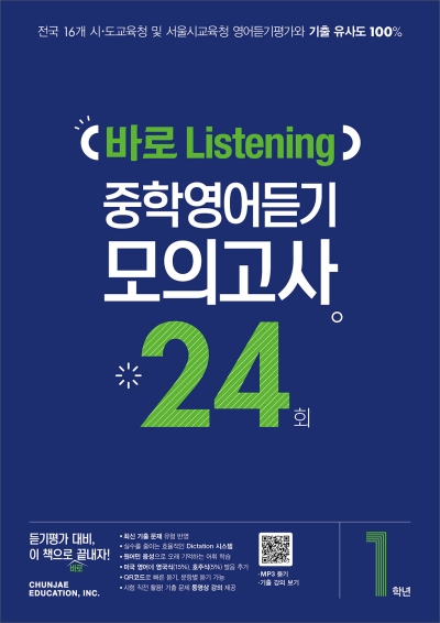 중학 내신 수행평가에 전국 시도교육청 영어듣기평가 점수가 반영된다. 듣기 문제만 잘 풀어도 영어 내신에 자신감을 가질 수 있다. 이 책은 전국 16개 시도교육청 및 서울시교육청 영어듣기평가를 가장 효율적이면서 완벽하게 대비할 수 있도록 구성하였다. 최신 시험 경향 반영은 기본이고, QR APP(앱)을 통하여 듣기 음원 파일들을 쉽게 활용할 수도 있다. 틀린 문항만 콕 찍어서 MP3 파일을 무한 반복하여 들을 수 있으며, 시험 직전 활용하도록 최신 기출 강의 동영상도 QR APP을 통해 제공된다. 또한 학생 스스로 계획하고 실천해 나갈 수 있도록 자기 주도 학습 관리표도 제공된다. 이제 이 책 하나로 중학영어듣기평가를 대비하자!