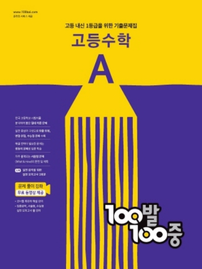 내신을 대비하기 위해서는 자신이 다니고 있는 고등학교가 그동안 어떠한 문제들을 출제하였는지 파악하는 것이 매우 중요합니다. 100발100중 고등수학 기출문제집은 전국 고등학교 기출문제를 분석, 연구하여 다양한 유형과 난도의 문제들을 출제 비율과 빈도에 따라 중단원별로 구성한 새 교육과정을 반영한 내신 1등급 대비 교재입니다.