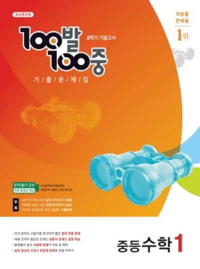 백발백중 기출문제집 수학 시리즈는 영어와 마찬가지로 시험기간마다 나뉘어져있습니다. 전국의 기출 문제를 기준으로 만들어져서 시험에서 거의 동일한 유형의 문제를 찾아볼수 있습니다. 쉬운 문제는 거의 똑같은 문제가 나올지도 모릅니다. 숫자만 다르고 동일하다면 문제를 푸는데 큰 어려움이 없을 것입니다.