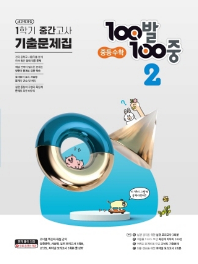 100발100중 중등수학 기출문제집의 큰 장점으로 알려진 특별부록에서는 실전 감각을 점검할 수 있는 실전 모의고사 3회분, 시험에 반드시 나오는 문제로 구성된 족집게 마무리 100선(객관식 80선, 서술형 20선), 수학 만점자를 가리기 위해 출제되는 고난도 기출문제, 마지막으로 시험 직전 최종 점검을 할 수 있는 파이널 모의고사 5회분을 제공한다.