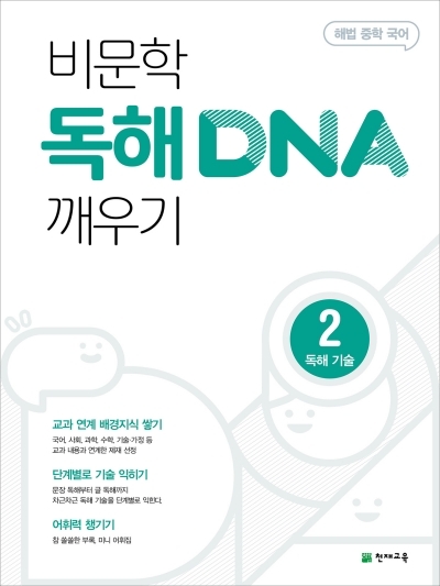 비문학 독해 DNA 깨우기 시리즈는 독해에 필요한 ‘글 분석 능력’, ‘어휘력’을 효과적으로 기르고, ‘배경지식’을 쌓을 수 있게 만든 책이다. 풍부한 예시를 들어 독해의 원리와 기술 및 기출 유형을 친절하게 설명하였으며, ‘독해 실전’을 두어 반복적이고 단계적으로 ‘글 분석 능력’을 기를 수 있게 하였다. 특히 1, 2권 ‘독해 실전’에는 국어뿐만 아니라 수학, 사회, 과학, 역사 등 중학교 과정의 전 교과와 관련된 제재를 선정·수록하여 자연스럽게 학습 단계에 맞는 ‘배경지식’을 쌓을 수 있게 하였다. 3권 ‘독해 실전’은 고1 전국연합학력평가에서 엄선한 지문과 흥미로운 주제의 새 지문을 함께 수록하여 실전에 대비할 수 있게 하였다.