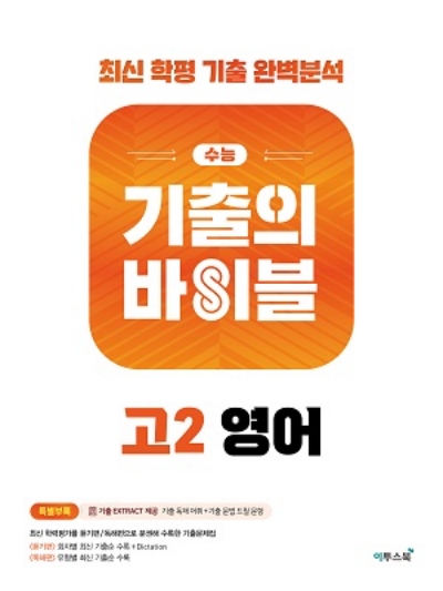 수능 기출의 바이블은 최신 3개년 학력평가를 듣기편, 독해편으로 나누어서 분권해 수록한 기출문제집입니다. 기출 문제를 풀어보면서 수능을 대비할 수 있습니다. 문제를 유형별로 분류하고 최신 연도별로 수록하여 공부할수 있도록 하였습니다.