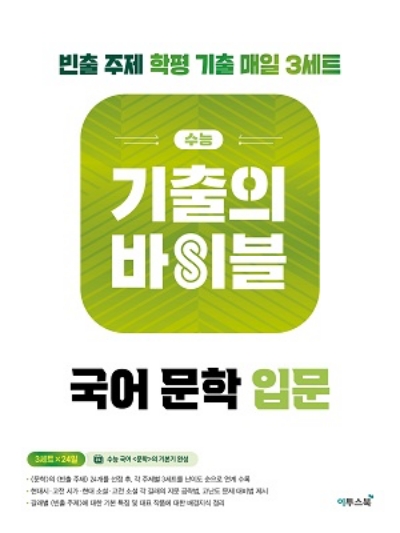 문학의 빈출 주제 24개를 선정 후, 각 주제별 3세트를 난이도 순으로 연계 수록하였다. 갈래별 지문 공략법, 고난도 문제 대비법, 빈출 주제에 대한 기본 특징 및 대표 작품에 대한 배경 지식을 제시하였다. 정답과 해설이 잘 보인다! 깔끔한 구성과 눈을 사로잡고 이해를 높이는 해설 자료가 가득 들었다