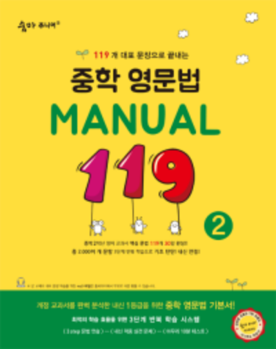 영문법은 어렵지만 꾸준하게 공부하다 보면 시험 문제를 푸는데 있어서 시간을 잡아먹지 않는 좋은 문제입니다. 그래서 문제를 쉽게 풀수 있도록 하기 위해서는 문법을 잘 공부해야합니다. 메뉴얼을 통해서 공부할수 있도록 하는 숨마쿰라우데 MANUAL 119 중학영문법을 이용해보시기 바랍니다. 이 교재는 2015년 개정 교육과정이 반영되어 있습니다. 또한 이 자료의 저작권은 해당 출판사에 있습니다. 이 사이트에서는 단순하게 정답 답지만을 제공합니다.