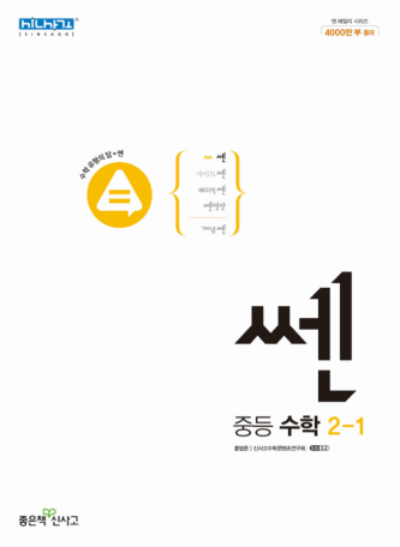쎈 수학은 가장 대표적인 중학 수학 문제집입니다. 신사고에서 만든 교재 중에서 가장 인기 있는 교재라고 할수 있습니다. 제가 중학교 시절에도 공부하던 교재였는데 지금까지 나오는 것을 보면 얼마나 잘 만드는지 알수 있습니다. 시험에 나오는 문제들로 구성되어 있습니다. 그래서 내신 점수를 향상시키는데도 도움이 됩니다.