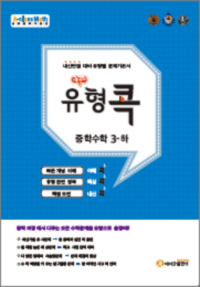 에이급 출판사에서 나온 교재 중에서 유형별로 콕 찝어서 공부할수 있는 교재입니다. 내신 시험을 대비하는데 좋고 서술형 문제까지 완벽하게 공부할수 있도록 하였습니다. 수학 공부를 하는데는 유형별로 학습을 하는 것이 중요합니다. 이 교재는 2015년 개정 교육과정이 반영되어 있습니다. 또한 이 자료의 저작권은 해당 출판사에 있습니다. 이 사이트에서는 단순하게 정답 답지만을 제공합니다.