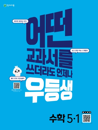 30여년 간의 초등 필수 교재로 자리 잡아온 천재교육 우등생 시리즈의 교육 경험과 노하우가 커다란 새 교과서 시장에 적합한 최적의 교재로 새롭게 태어났어요. 언제 어디서나, 어떤 교과서로 공부하더라도 우등생 한권이면 학교공부 완성! 요즘 시대에 딱 맞는 다양한 학습자료들과 풍부한 동영상 강의로 쉽게 풀 수 있는 방법까지 알려주니까 수학이 어렵지 않아요. 엄마가 편하게 가르칠 수 있어 좋아요.