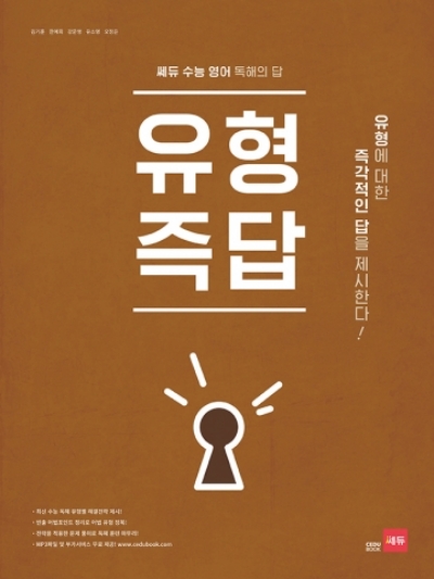 수능에 출제되는 기출문제들을 분석해보면 공통적인 유형이 반복되고 저마다 특징과 접근 방법이 다르다는 것을 알 수 있다. 유형즉답은 수능 독해의 답 시리즈 그 두 번째 교재로, 수능 고득점에 꼭 필요한 독해 유형별 학습전략을 한데 모아 단계적으로 습득할 수 있도록 구성했다. 꾸준히 학습한다면 수능 독해에 대한 즉각적인 답을 제시해 줄 것이다. 독해의 답 시리즈인 구문현답으로 독해 지문 속 구문을 다지고, 유형즉답으로 유형별 대처 방법까지 확실하게 다져보자! 영어 독해 고득점은 여러분의 것이다!