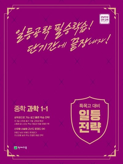 중학 내신 내신 고득점을 위한 필수 심화 학습서, 일등 전략 중학 과학입니다. 하루 6쪽, 주 3일 완성의 체계적인 학습 계획에 따라 효과적으로 학습할 수 있습니다. 기출문제 분석을 통해 개념 확인 문제부터 신유형·서술형, 창의 융합형, 고난도 문제까지 다양한 유형의 문제를 풀어 볼 수 있습니다. 시험에 잘 나오는 대표 유형 문제를 미니북으로 제공하여 반복·심화 학습이 가능합니다.