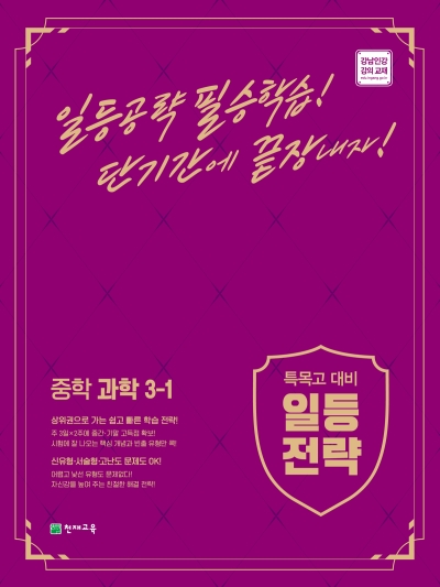 중학 내신 내신 고득점을 위한 필수 심화 학습서, 일등 전략 중학 과학입니다. 하루 6쪽, 주 3일 완성의 체계적인 학습 계획에 따라 효과적으로 학습할 수 있습니다. 기출문제 분석을 통해 개념 확인 문제부터 신유형·서술형, 창의 융합형, 고난도 문제까지 다양한 유형의 문제를 풀어 볼 수 있습니다. 시험에 잘 나오는 대표 유형 문제를 미니북으로 제공하여 반복·심화 학습이 가능합니다.