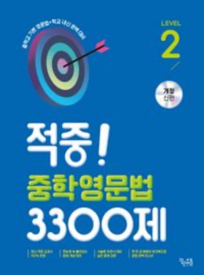 적중 중학영문법 3300제는 본책과 워크북으로 나뉩니다. 적중! 중학영문법 3300제에 나오는 단어를 테스트할 수 있는 단어 암기장과 서술형 대비 문장 연습, 내신 대비 추가 문제를 제공합니다. 이 자료의 저작권은 해당 출판사에 있습니다. 이 사이트에서는 단순하게 정답 답지만을 제공합니다.