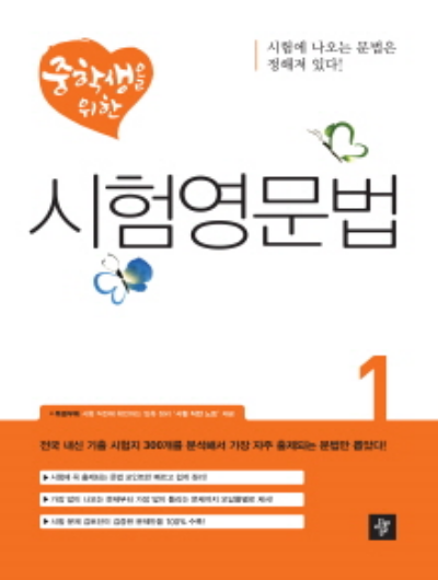 영어 시험에서 단골 문제는 영어 문법입니다. 문법은 가장 변별력이 좋고 문제를 응용해서 내기 쉽습니다. 문법은 수학처럼 정해진 것이 아니라 상황에 따라서 달라질수 있기 때문에 다양한 문제로 만들 수 있습니다. 그래서 영어 시험 중에서도 꽤 많은 문항이 문법 문제로 되어 있습니다. 중학생을 위한 시험 영문법은 시험에 나오는 문제로 구성되어 있습니다.