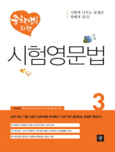 영어 시험에서 단골 문제는 영어 문법입니다. 문법은 가장 변별력이 좋고 문제를 응용해서 내기 쉽습니다. 문법은 수학처럼 정해진 것이 아니라 상황에 따라서 달라질수 있기 때문에 다양한 문제로 만들 수 있습니다. 그래서 영어 시험 중에서도 꽤 많은 문항이 문법 문제로 되어 있습니다. 중학생을 위한 시험 영문법은 시험에 나오는 문제로 구성되어 있습니다.