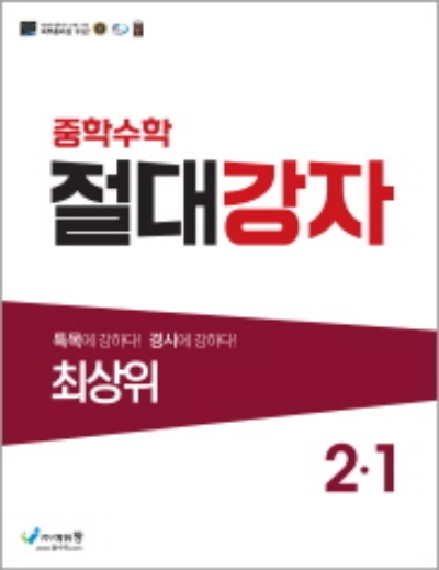 중학 수학 절대강자는 3가지로 나뉩니다. 자신에게 해당되는 난이도를 선택해서 공부할수 있고 최상위까지 공부하게 된다면 상위 5퍼센트 안에 들수 있습니다. 기본 연산부터 개념 그리고 응용 모두 즐겁게 공부하세요. 수학이 어렵지만 재미있게 공부하면서 자신의 것으로 만들어야합니다. 이 자료의 저작권은 해당 출판사에 있습니다. 이 사이트에서는 단순하게 정답 답지만을 제공합니다.