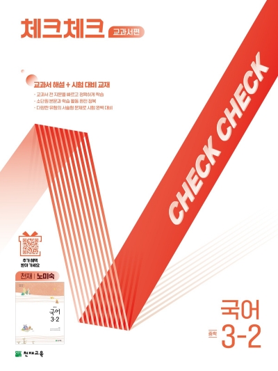 체크체크 국어는 10종 국어 교과서의 핵심 개념과 문제를 정리한 중등 국어 기본서로, 22개정 교육과정의 주요 개념을 시각 자료와 동영상을 통해 쉽게 이해할 수 있도록 구성했다. 특히 문학 작품 선정에 신경 썼으며, 서·논술형 문제 해결 방법과 가이드를 제공해 학생들이 탄탄한 국어 기본기를 쌓을 수 있도록 돕는다.