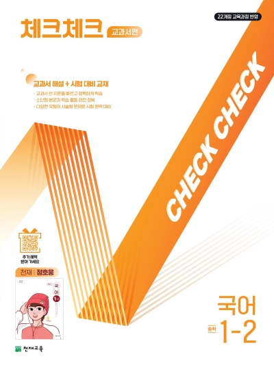 체크체크 국어는 10종 국어 교과서의 핵심 개념과 문제를 정리한 중등 국어 기본서로, 22개정 교육과정의 주요 개념을 시각 자료와 동영상을 통해 쉽게 이해할 수 있도록 구성했다. 특히 문학 작품 선정에 신경 썼으며, 서·논술형 문제 해결 방법과 가이드를 제공해 학생들이 탄탄한 국어 기본기를 쌓을 수 있도록 돕는다.