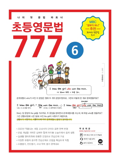 MBC 공부가 머니에서 추천한 교재입니다. 화제의 도서로 초등학생이 영문법을 이해하는데 도움을 줍니다. 초등학생의 눈 높이에 맞추어서 공부할수 있도록합니다. 지루하지 않고 재미있게 공부할수 있습니다. 각종 삽화가 삽입되어 있어서 아이들이 흥미를 갖고 공부할 수 있습니다. 이 자료의 저작권은 해당 출판사에 있습니다. 이 사이트에서는 단순하게 정답 답지만을 제공합니다.