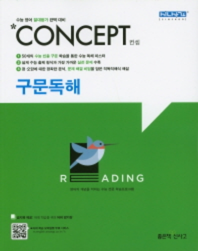 컨셉 독해 시리즈는 수능 영어의 독해력을 향상 시킬 수 있도록 돕습니다. 최신 수능 출제 유형을 완벽하게 반영하여 구문 독해 유형 실전의 최적 구성으로 수능 독해력을 향상시킵니다. 실전과 유사한 문제를 수록하엿습니다. 어휘 암기장을 별도로 제공합니다.