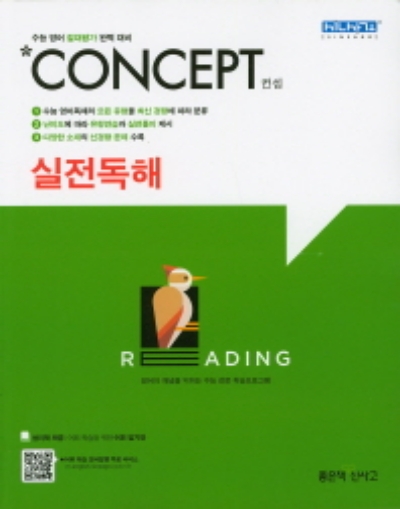 컨셉 독해 시리즈는 수능 영어의 독해력을 향상 시킬 수 있도록 돕습니다. 최신 수능 출제 유형을 완벽하게 반영하여 구문 독해 유형 실전의 최적 구성으로 수능 독해력을 향상시킵니다. 실전과 유사한 문제를 수록하엿습니다. 어휘 암기장을 별도로 제공합니다.