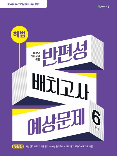 중학교에 올라가 반을 편성하기 위해 보는 첫 걸음인 반편성 배치고사를 꼼꼼히 대비하기 위해 각 학교의 기출 문제 유형을 잘 분석하여 시험지처럼 8절 크기로 만든 천재교육의 멋진 시험 길라잡이입니다. 경험이 풍부한 천재교육의 편집진이 전과목에 걸쳐 자주 나올만한 핵심 문제를 꼼꼼히 분석하여 만든 든든한 반편성 배치고사 대비 문제집입니다.