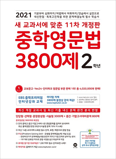 아래로 내리시면 2021 11차 개정판 중학영문법 3800제 2학년 답지를 확인하실 수 있습니다.