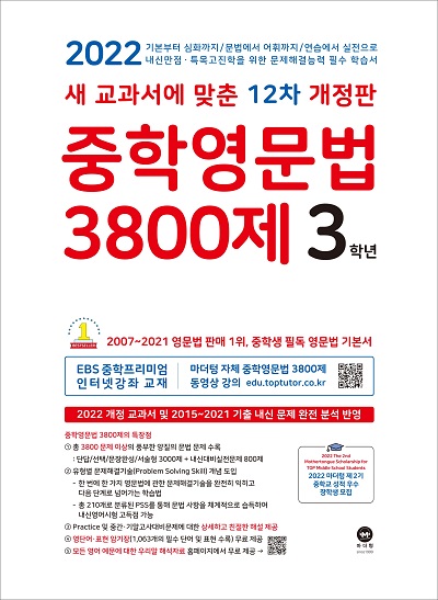 아래로 내리시면 2022 12차 개정판 중학영문법 3800제 3학년 답지를 확인하실 수 있습니다.