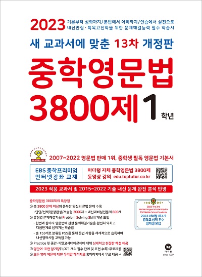아래로 내리시면 2023 13차 개정판 중학영문법 3800제 1학년 답지를 확인하실 수 있습니다.