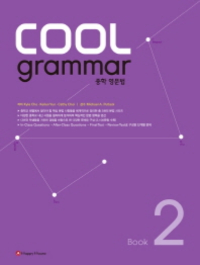 COOL grammar는 중학교 레벨에서 알아야 할 핵심 문법 사항들을 체계적으로 정리한 총 3권의 문법 시리즈입니다. 다양하고 풍부한 문제를 통해서 학생 스스로 또는 학원에서 기초 영문법을 습득하거나 학교 내신 대비를 효과적으로 준비하는데 적합한 교재입니다.