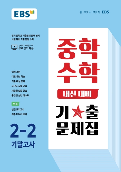 아래로 내리시면 2022 EBS 중학 수학 내신 대비 기출문제집 2-2 기말고사 답지를 확인하실 수 있습니다.