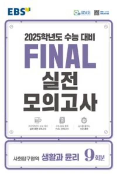 아래로 내리시면 2025 EBS FINAL 실전 모의고사 생활과 윤리 답지를 확인하실 수 있습니다.