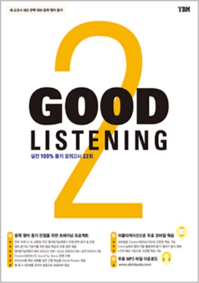 굿 리스닝은 중학 영어 듣기 내신 대비와 전국 16개 시·도 교육청 주관 영어듣기능력평가 대비를 위한 모의고사 트레이닝 교재입니다. 새 교과서의 내용과 일상/학교생활, 여가, 시사, 과학, 환경, 문화 등 흥미로운 소재를 담은 내용으로 시험 만점을 위한 준비뿐만 아니라 다양한 분야의 배경지식도 습득할 수 있습니다.