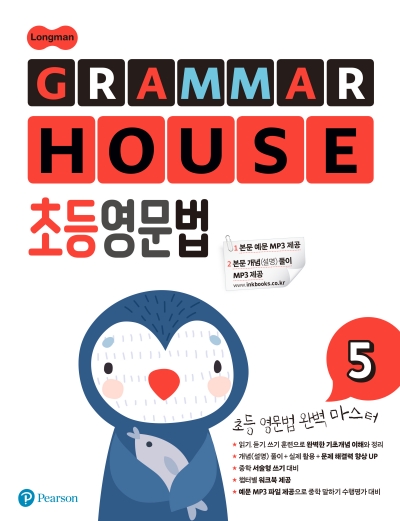 GRAMMAR HOUSE 초등영문법은 총 6권으로 영어 문법을 처음 시작하는 초등학생들이 초등영문법을 완전 마스터할 수 있게 구성되어 있습니다. 간략하고 쉬운 문법 설명과 반복되는 문제들을 풀다보면 어느새 문법이 친근하게 느껴집니다.