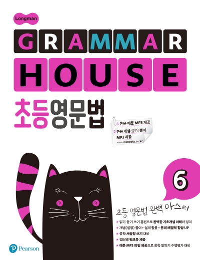 GRAMMAR HOUSE 초등영문법은 총 6권으로 영어 문법을 처음 시작하는 초등학생들이 초등영문법을 완전 마스터할 수 있게 구성되어 있습니다. 간략하고 쉬운 문법 설명과 반복되는 문제들을 풀다보면 어느새 문법이 친근하게 느껴집니다.