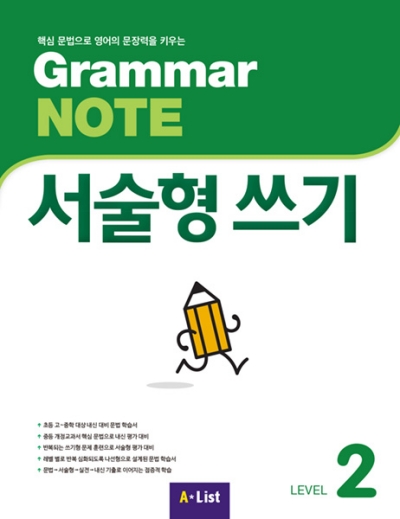 그래머노트는 서술형쓰기와 일반 버전이 있습니다. 서술형 쓰기는 시험을 완벽하게 준비하는데 도움을 줍니다. 뿐만 아니라 서술형 평가를 치를때도 도움이 됩니다. 완벽하게 이해했다고 하더라도 부족한 부분이 있을 수 있는데 서술형으로 공부하다보면 완벽하게 정리됩니다. 이 교재는 2015년 개정 교육과정이 반영되어 있습니다. 또한 이 자료의 저작권은 해당 출판사에 있습니다. 이 사이트에서는 단순하게 정답 답지만을 제공합니다.