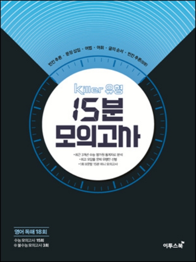 최근 3개년 수능의 오답률을 분석하여, 빈칸 추론 / 문장 삽입 / 어법 / 어휘 / 글의 순서 / 빈칸 추론(장문)의 최고 오답률 유형을 뽑아내었습니다. 상위권 학생들이 잘 틀리는 유형으로만 구성하여 짧은 시간 안에 효율적 학습이 가능합니다. 최고 오답률을 기록한 킬러 유형의 문제를 실제 수능 비율에 맞춰 수록하였습니다. 실제 수능 독해 시험 시간을 근거로, 킬러 유형의 문항별 풀이 시간을 고려하여 8문항 15분의 기준을 제시하였습니다.