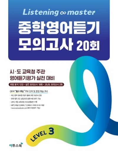 이투스북에서 제공하는 리스닝 마스터 중학 영어듣기 모의고사 20회는 영어듣기를 공부를 위해서 시험처럼 풀어볼수 있는 교재입니다. 영어 듣기 실력은 꾸준하게 하면 할수록 그 실력이 늘어나게 되어 있습니다. 이 교재는 2015년 개정 교육과정이 반영되어 있습니다. 또한 이 자료의 저작권은 해당 출판사에 있습니다. 이 사이트에서는 단순하게 정답 답지만을 제공합니다.